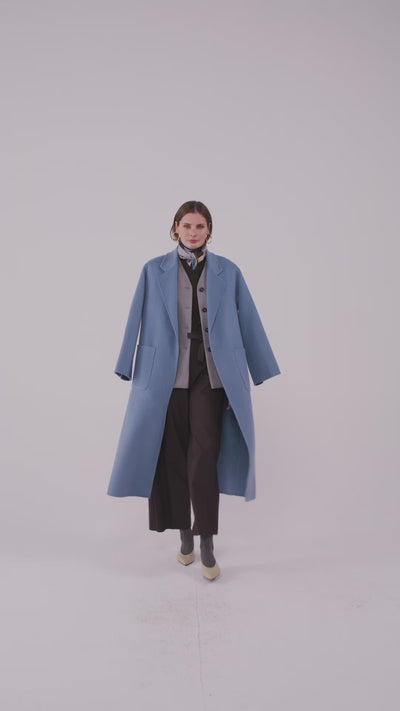 Questo cappotto lungo, dotato di tasche funzionali e cintura regolabile, unisce eleganza e praticità. La silhouette slanciata valorizza la figura, mentre le tasche offrono comodità quotidiana. La cintura permette di definire la vita, garantendo una vestibilità personalizzata e raffinata.