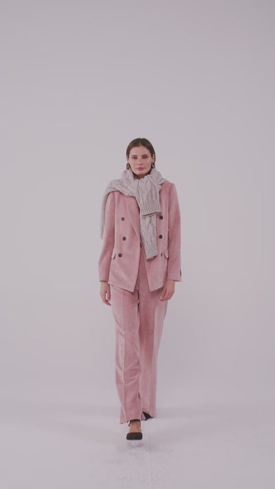 Questa giacca doppiopetto in velluto a coste combina un design classico con una texture ricca e raffinata. Il velluto a coste offre un aspetto sofisticato e una piacevole sensazione al tatto, mentre il taglio doppiopetto valorizza la figura con eleganza.