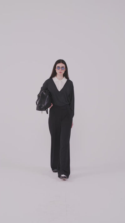 Questa maglia a manica lunga con colletto a camicia offre un design raffinato e versatile, ideale per un look professionale e curato. Il colletto a camicia aggiunge un tocco classico che rende il capo perfetto sia per l’ufficio sia per occasioni più formali. Facile da abbinare, arricchisce il guardaroba con un elemento essenziale e sempre attuale.